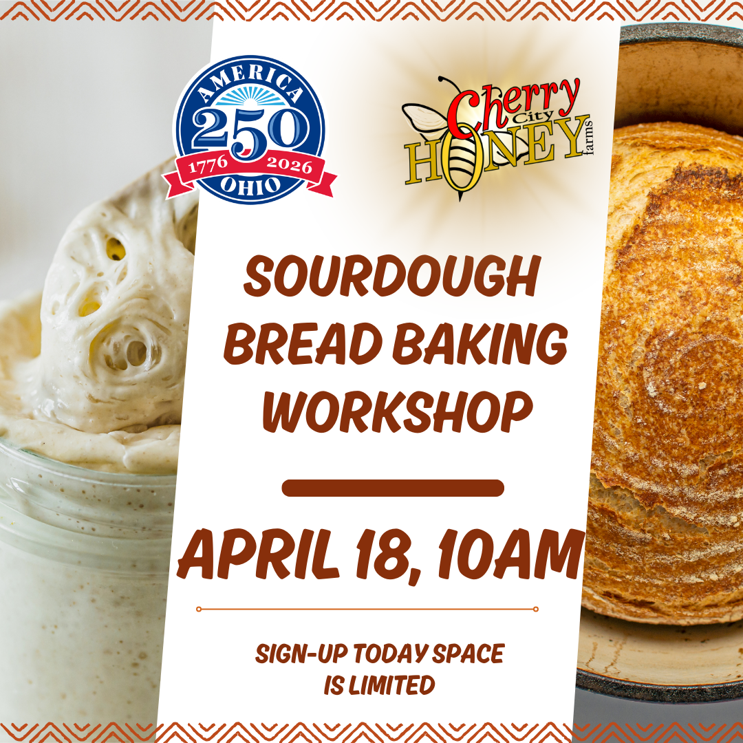As part of our America 250 workshop series, this class celebrates the traditional skills that sustained early American and Ohio farm families. Long before commercial yeast, sourdough starters were a staple in pioneer kitchens. These living cultures connected generations, turning simple ingredients into nourishing bread that fed communities across the frontier. Learning sourdough today helps us reconnect with those timeless traditions that helped build Ohio.